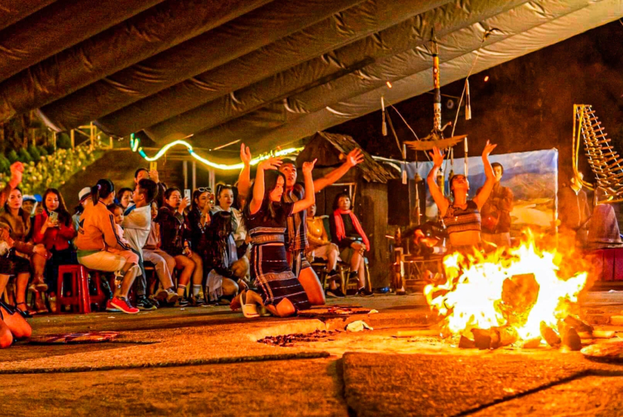 - Chơi quanh bếp lửa, hát giao lưu, múa những điệu múa xoang đơn giản cùng các chàng trai, cô gái mặc đồ truyền thống trong tiếng cồng chiêng rộn ràng.