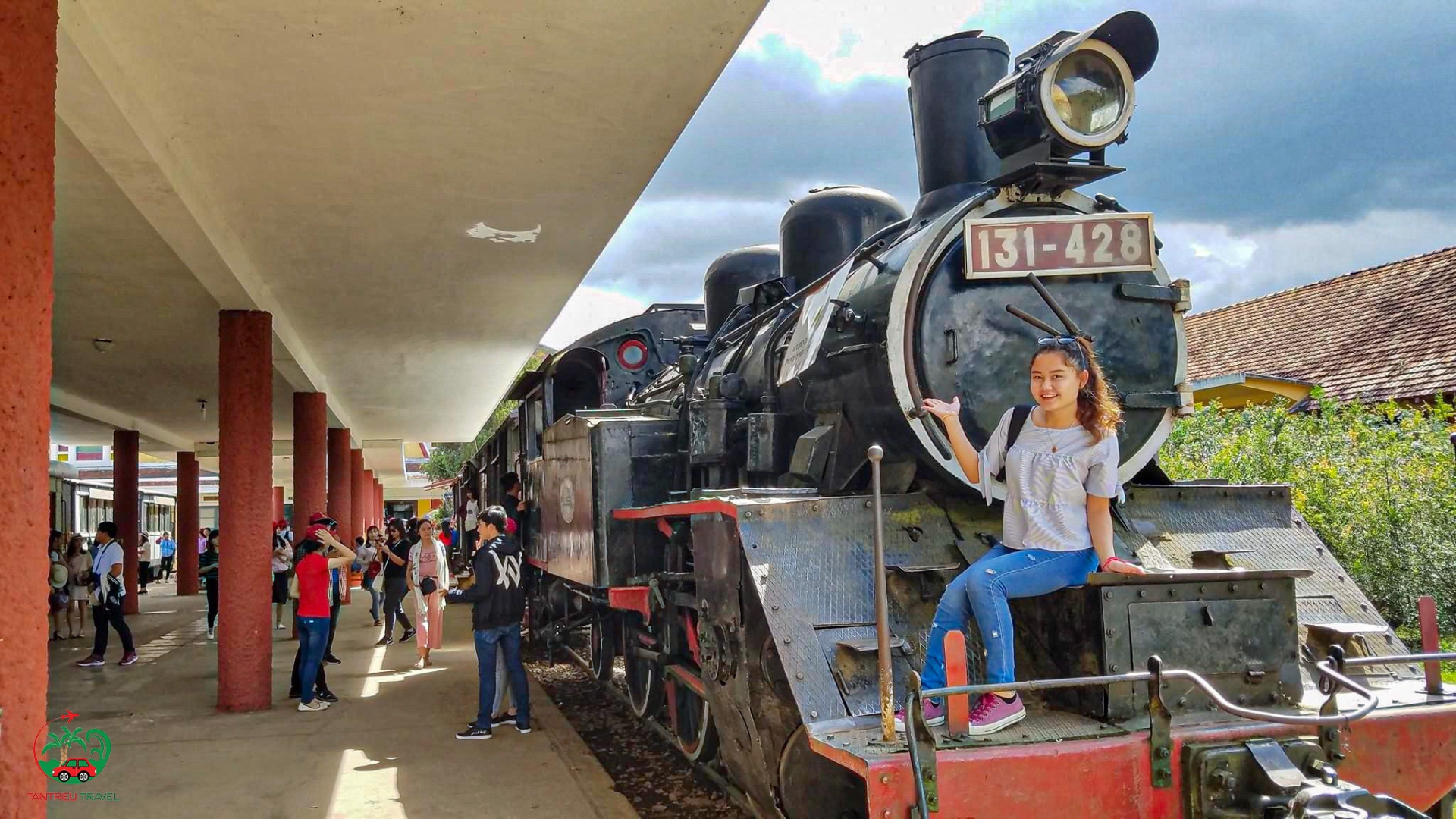 10h00: Xe đưa quý khách tham quan Gar Đà Lạt - Nhà ga xe lửa cổ nhất tại Đông Dương, là một công trình kiến trúc đặc sắc mang tính biểu tượng của Đà Lạt - Xứ sở ngàn hoa, được thiết kế và xây dựng theo lối kiến trúc Pháp cổ điển do hai kiến trúc sư người Pháp là Moncet và Reveron thiết kế. Hình dáng nhà ga giống núi Langbiang hùng vĩ ngọn núi cao nhất Đà Lạt. Phía trước còn có mặt đồng hồ to ghi lại thời gian mà bác sĩ Alexandre Yersin đã phát hiện ra Đà Lạt. Là nhà ga cao nhất và đẹp nhất tại Việt Nam ghi dấu ấn đặc biệt trong ngành Đường sắt Việt Nam.