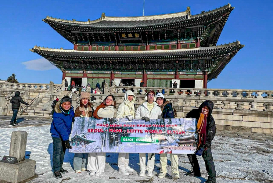 Quý khách tập trung tại sân bay Tân Sơn Nhất ga đi quốc tế, Trưởng Đoàn hướng dẫn làm thủ tục hàng không cho quý khách đáp chuyến bay đi Hàn Quốc.