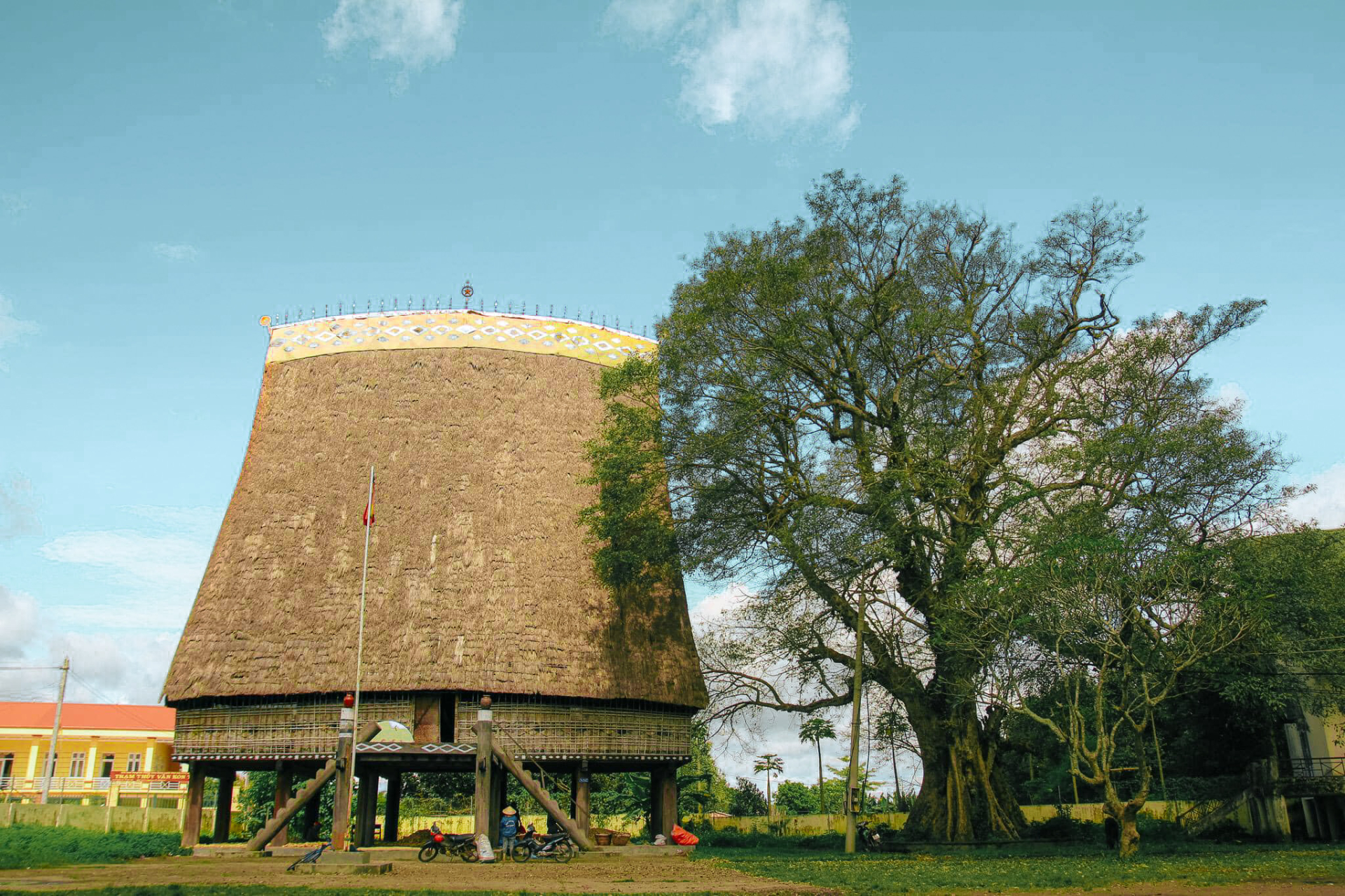 16h00: Đoàn đến Buôn Ma Thuột tham quan làng cà phê Trung Nguyên, đến đây du khách sẽ được hòa mình trong không gian xanh, ngắm những cây cà phê cổ đan xen những pho tượng Tây Nguyên, nghe những huyền thoại và văn hóa cà phê các nước, tham quan không gian nhà dài Êđê, nơi trưng bày những hiện vật cổ có giá trị lớn và lâu đời nhất của Tây Nguyên như bộ sưu tập cồng chiêng và các công cụ, nông cụ, vũ khí…
